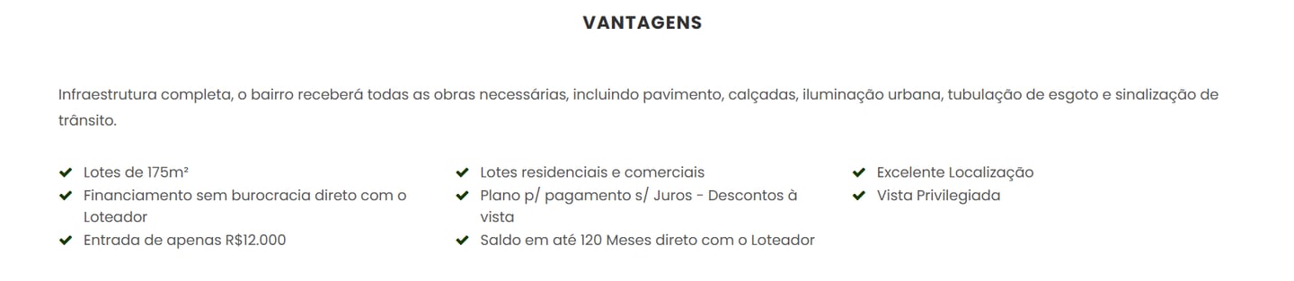 Unidades de lotes a partir de 175,00 m², por apenas R$ 131.000,00 à vista