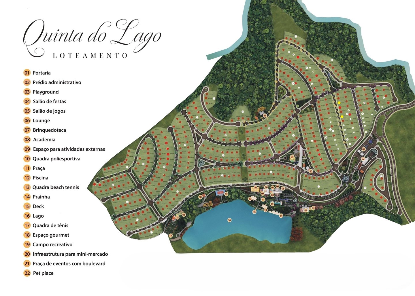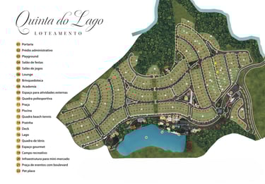 O loteamento oferece lazer realmente diferenciado, com destaque para o lago com deck e praia. Mais que um local para contemplação, o lago é o principal atrativo do Quinta do Lago. Refresque-se em suas águas, brinque com as crianças, pratique natação, caiaque, stand up paddle e muito mais.