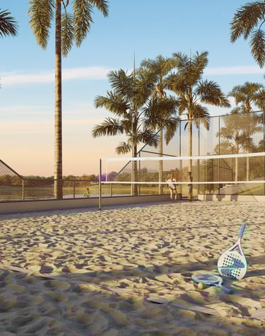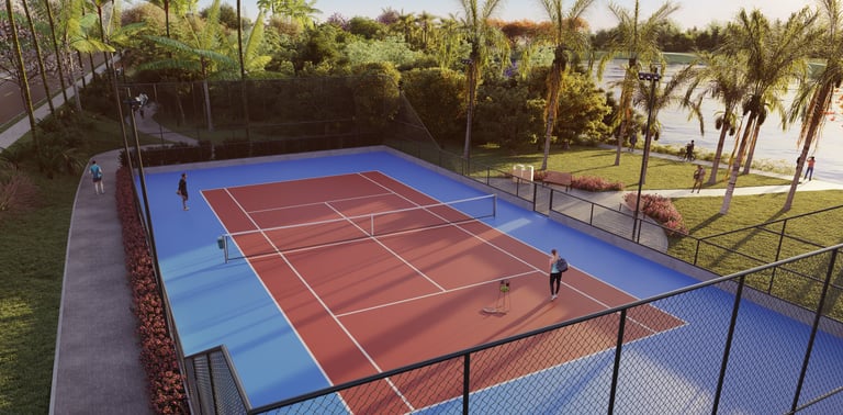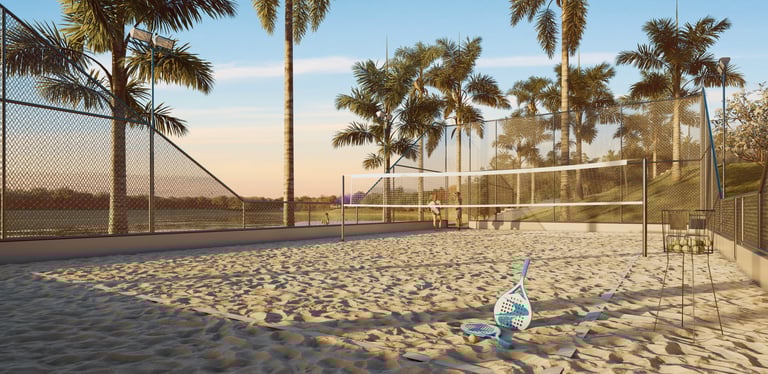 Interligado por longa pista de caminhada, o complexo esportivo às margens do lago contém diversos tipos de quadras (poliesportiva, tênis, beach tennis), campo de futebol, academia ampla e equipada com extensão externa para atividades ao ar livre, piscinas infantil e adulto com deck molhado, borda infinita, spa e bangalôs e claro, pet place para que os moradores de quatro patas também se exercitem e interajam.