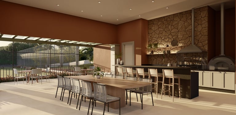 Desfrute do lindo salão de festas, equipado e decorado para eventos de todos os tipos e portes, além dos espaços gourmet com churrasqueira e forno para pizza. Conte ainda com uma linda praça central com traffic calming e espaço exclusivo para food trucks que receberá eventos para os moradores.